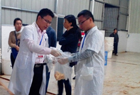 根據(jù)轄區(qū)實(shí)際情況,該局采用分組分片區(qū)的形式對(duì)轄區(qū)內(nèi)的農(nóng)貿(mào)市場(chǎng)進(jìn)行現(xiàn)場(chǎng)檢查,對(duì)牛百葉、鳳爪、海蜇等水發(fā)產(chǎn)品和豬、牛、羊肉現(xiàn)場(chǎng)使用快檢方法進(jìn)行鑒別,如經(jīng)現(xiàn)場(chǎng)快檢呈陽(yáng)性的,按照監(jiān)督抽樣規(guī)定的程序、步驟和要求進(jìn)行抽樣,抽樣完后將樣品送往海南省食檢中心檢驗(yàn)檢測(cè)。經(jīng)檢測(cè)對(duì)確定含甲醛、雙氧水或?yàn)樽⑺獾?,將立即移交公安部門(mén)追究添加非法物質(zhì)當(dāng)事人的刑事責(zé)任。對(duì)注水肉的,要追溯屠宰來(lái)源,將屠宰場(chǎng)的違法行為提供給農(nóng)業(yè)部門(mén)。