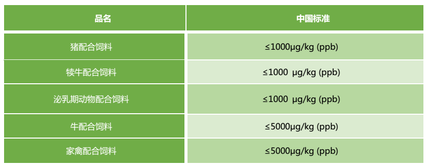 3.1、中國(guó)嘔吐毒素限量標(biāo)準(zhǔn) (飼料)