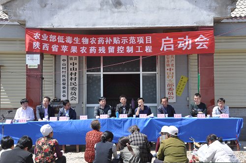為控制蘋(píng)果農(nóng)藥殘留,保障蘋(píng)果質(zhì)量安全,“農(nóng)業(yè)部低毒生物農(nóng)藥補(bǔ)貼項(xiàng)目暨陜西省蘋(píng)果農(nóng)藥殘留控制工程”啟動(dòng)儀式在蒲城縣罕井鎮(zhèn)中山村舉行。旨在通過(guò)低毒生物農(nóng)藥補(bǔ)貼項(xiàng)目和農(nóng)藥殘留控制工程實(shí)施,探索農(nóng)藥使用監(jiān)管新模式,從源頭上確保農(nóng)產(chǎn)品質(zhì)量安全。